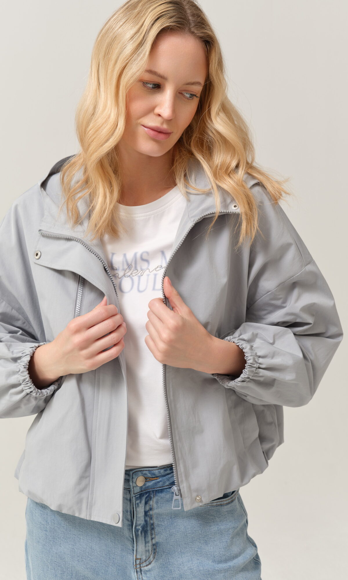 Lekka kurtka FÉRIA w odcieniu jasnego błękitu z kapturem